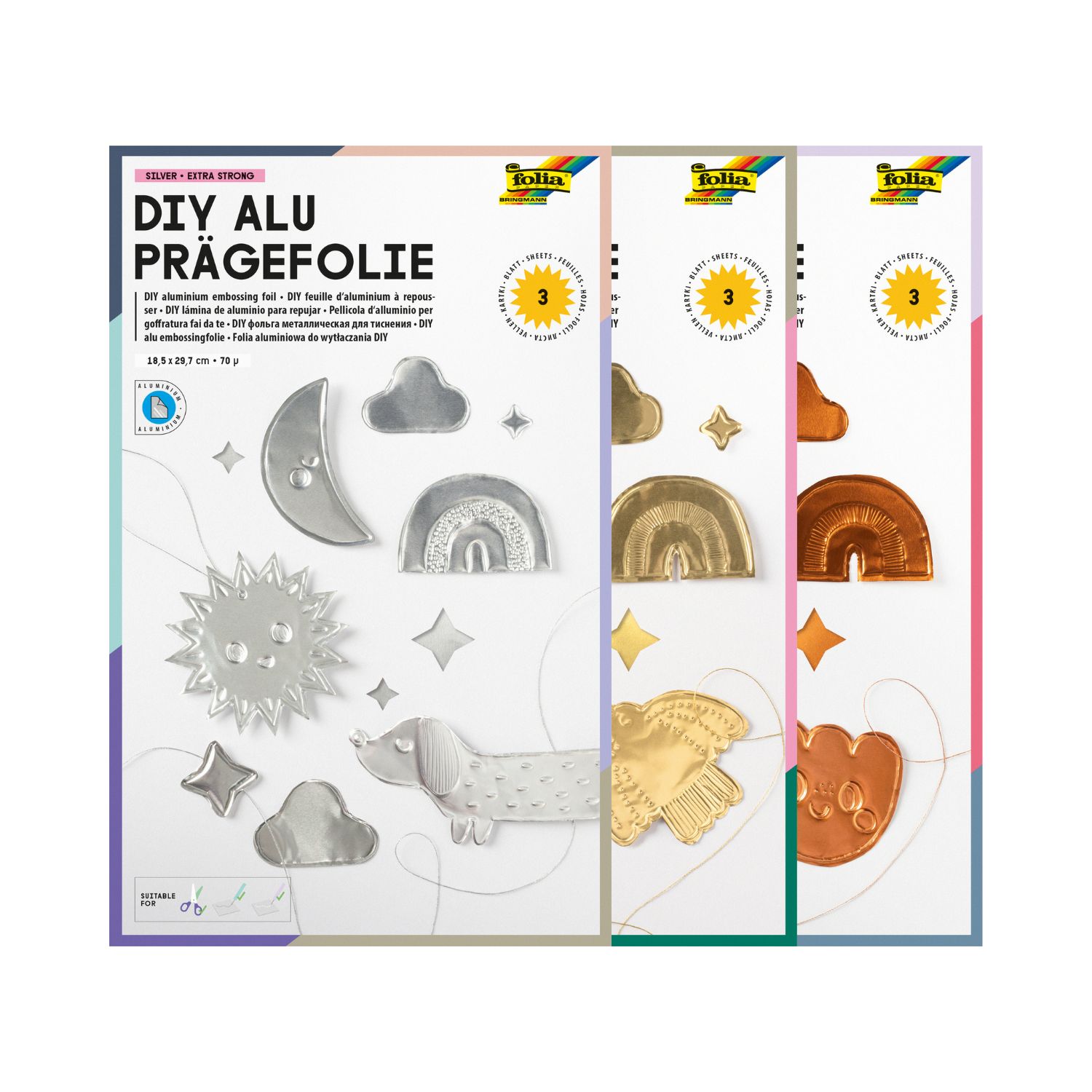 Prägen mit dem Prägestift geht nicht nur auf dem Papier, sondern auch auf Metallicfolie! Die runde Spitze des Prägestifts gleitet dabei ganz sanft durch das weiche Metall und sorgt für ein meditatives Gefühl. Der Druck hinterlässt auf der Rückseite Vertiefungen und auf der Vorderseite Erhöhungen/Reliefs, in denen sich das Licht von Kerzen oder Lampen spiegelt. Das Ergebnis ist auf beiden Seiten ein haptisches Erlebnis und kann als Anhänger, Kartenmotiv, kleine Deko am Ast oder funkelndes Kunstwerk genutzt werden!
