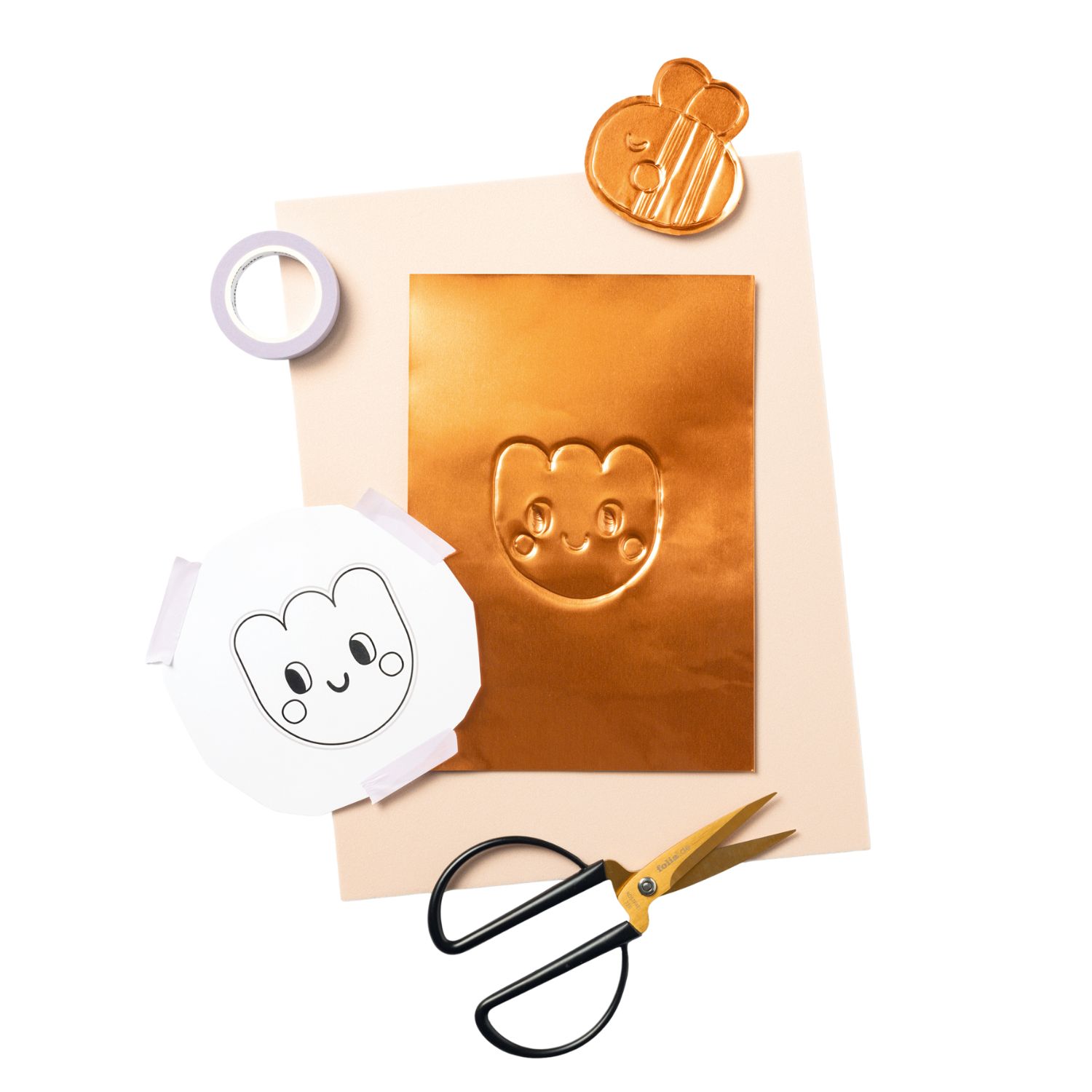 - Bei einer Vorlage: befestige die Vorlage mit Masking Tape auf der Folie und fahre die Konturen/Linien mit dem Prägestift nach.