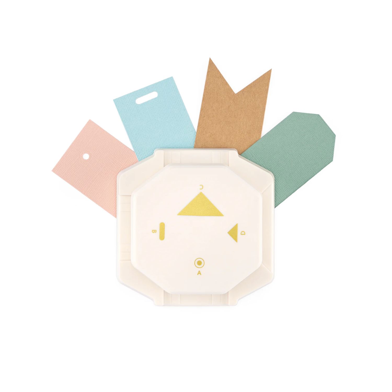 Mit dem 4-in-1 Etikettenstanzer kannst du ganz einfach die schönsten Etiketten, Geschenkanhänger und Eintrittskarten stanzen oder den Ecken deines Papeterie- oder Scrapbooking Projekts einen spannenden Abschluss verleihen. Verwende dafür entweder auf 1-4 cm zugeschnittene Papierstreifen aus (Kraft-)Papier, Aquarellpapier oder Karton (z.B. Folia Tonpapier) oder die passenden Etikettenblöcke.