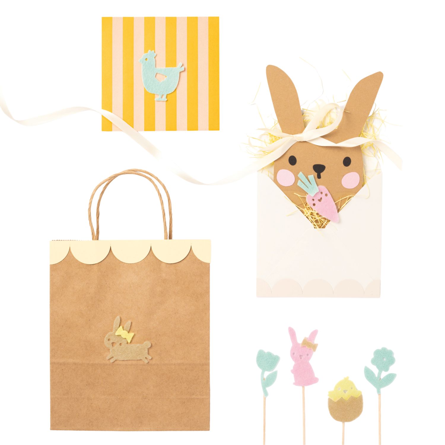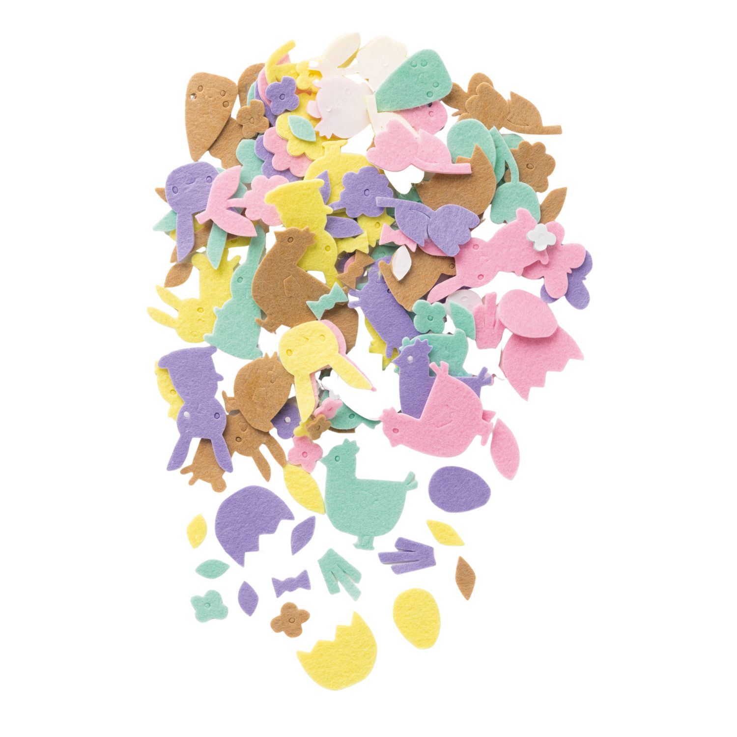Frühling zum Aufkleben! Diese Filzsticker in 5 frühlingshaften Pastellfarben bringen Küken, Hasen, Blumen & Co direkt auf deine DIY (Oster-)Karten und Geschenke. Einfach mixen, kleben und z.B. mit Stempeln kombinieren – fertig sind süße Ostergrüße und Frühlingsmotive für DIY Karten, Geschenkanhänger und andere Papierprojekte.