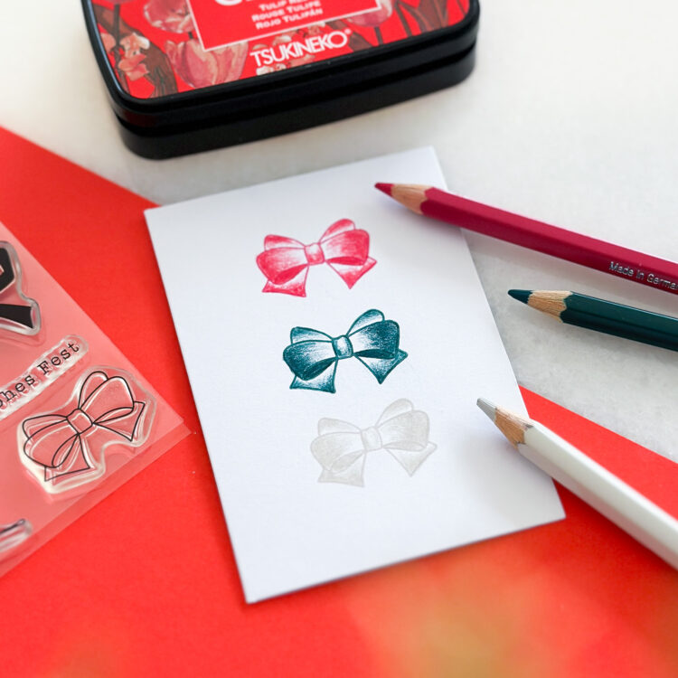 Stempelkissen auswählen und die Stempelfläche durch leichtes Tupfen damit einfärben.