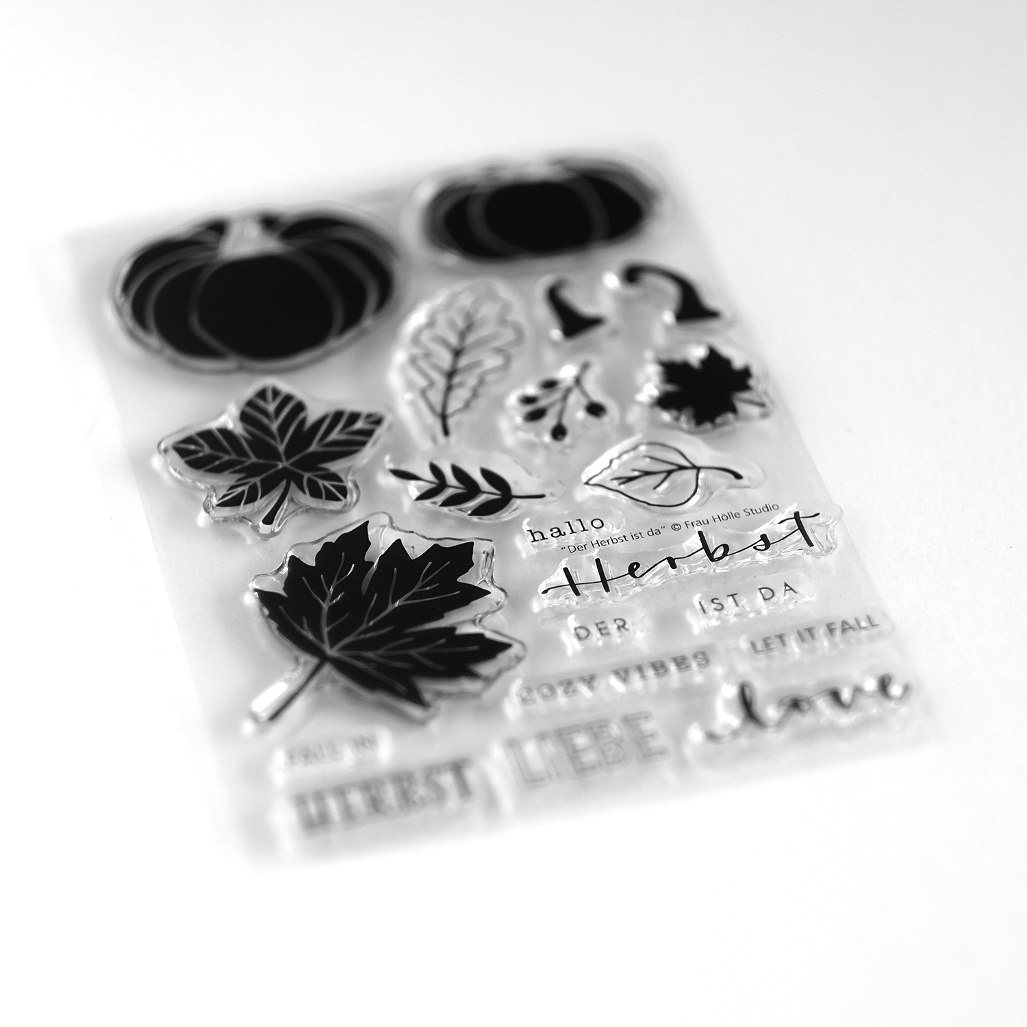 Mit dem exklusiv bei uns erhältlichen Stempelset “Der Herbst ist da” kannst du individuelle Karten und kreative Projekte für verschiedene Anlässe gestalten. Das Set enthält 21 Clear Stamps aus hochwertigem Photopolymer mit einer Auswahl an herbstlichen Illustrationen sowie modernen (Sans) Serif Schriftzügen und eigenen Letterings von Frau Hölle zur Ergänzung. Die Motive lassen sich vielseitig für Geburtstage, Herbstfeste oder andere Feierlichkeiten verwenden.