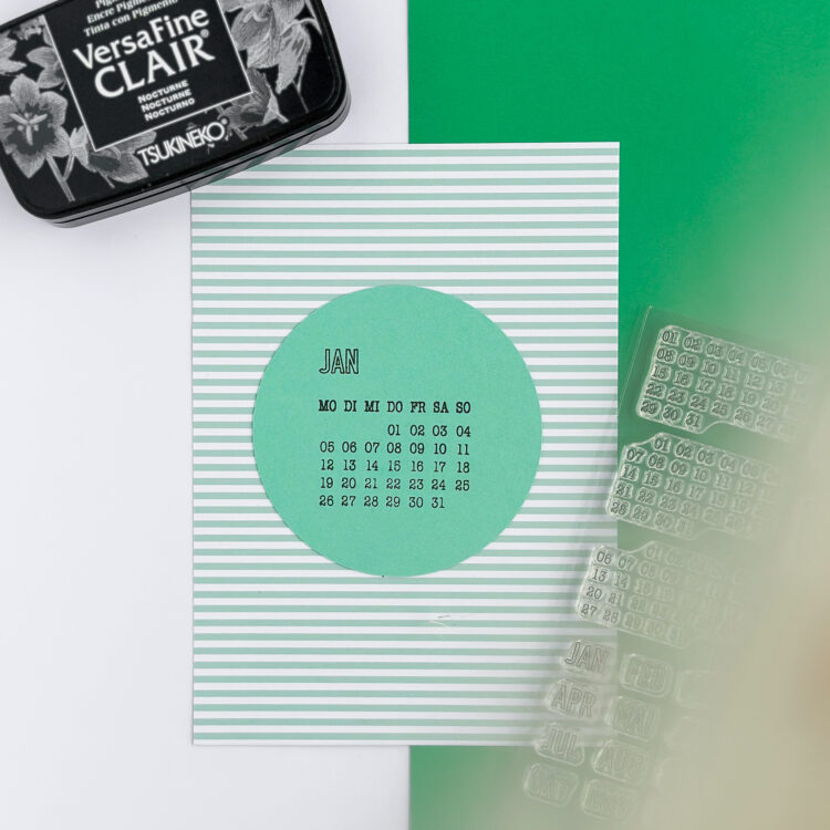 - Passendes Kalendarium darunter stempeln.