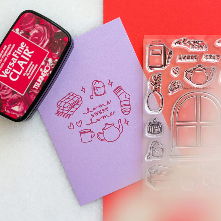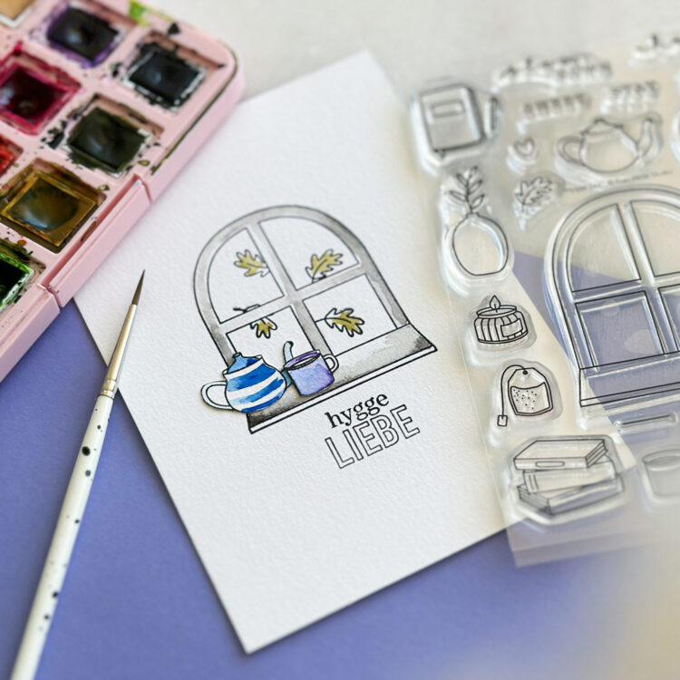 Mit dem exklusiv bei uns erhältlichen Stempelset Hygge Zeit kannst du individuelle Karten und kreative Projekte für verschiedene Anlässe gestalten. Das Set enthält 24 Clear Stamps aus hochwertigem Photopolymer mit einer Auswahl an herbstlich-hyggeligen Illustrationen sowie modernen (Sans) Serif Schriftzügen und eigenen Letterings von Frau Hölle zur Ergänzung. Die Motive lassen sich durch die Outlines perfekt zum Ausmalen verwenden (z.B. mit Aquarellfarben).