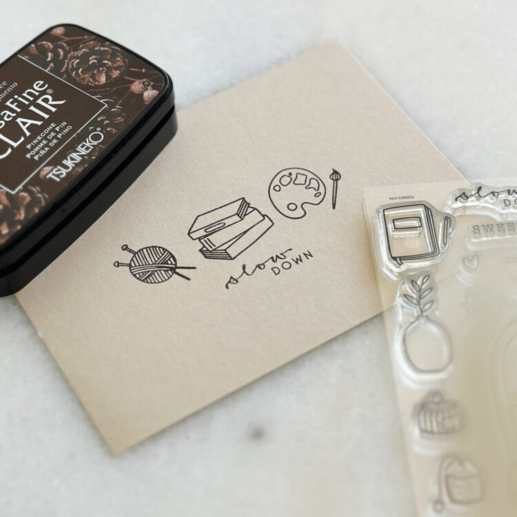 Kombiniere die Stempel auf einem Hintergrund aus Aquarell– oder Acrylfarben oder zusammen mit kleinen Stickern auf Klappkarten mit unseren passenden Umschlägen. Oder stemple sie mit den StazOn Stempelkissen für glatte Oberflächen auf Acrylanhänger oder Cake Topper.