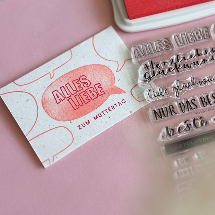 Zur langfristigen Aufbewahrung deiner Stempelsets empfehlen wir dir die exklusiv für uns produzierte BUNTBOX M aus Graspapier. Darin kannst du deine Stempelsets passgenau lagern und sie außen individuell gestalten.