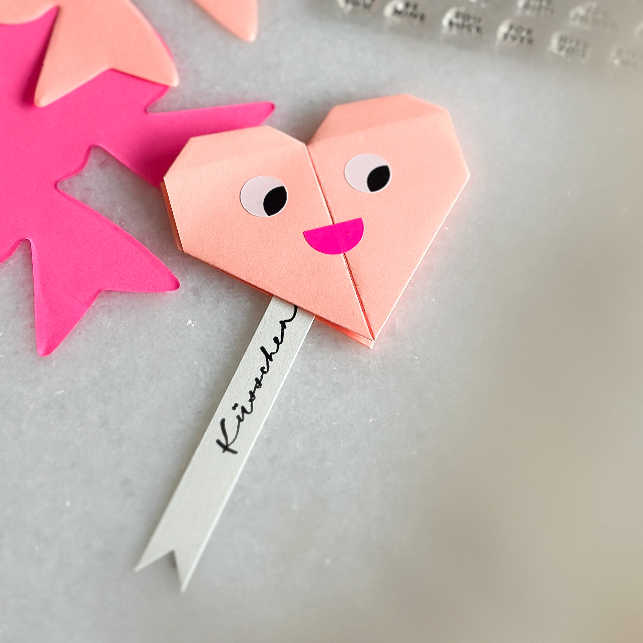 Mit dem Stickerset Augen und den Punkte Stickern lassen sich ganz einfach gestempelte, gestanzte oder ausgeschnittene Motive in ein Gesicht verwandeln. Einfach das gewünschte Augenpaar aufkleben, einen Mund und/oder Backen dazu – fertig ist ein niedliches Element für DIY Karten, Geschenkanhänger und andere Papierprojekte zum Valentinstag, Muttertag, Geburtstag, u.v.m.