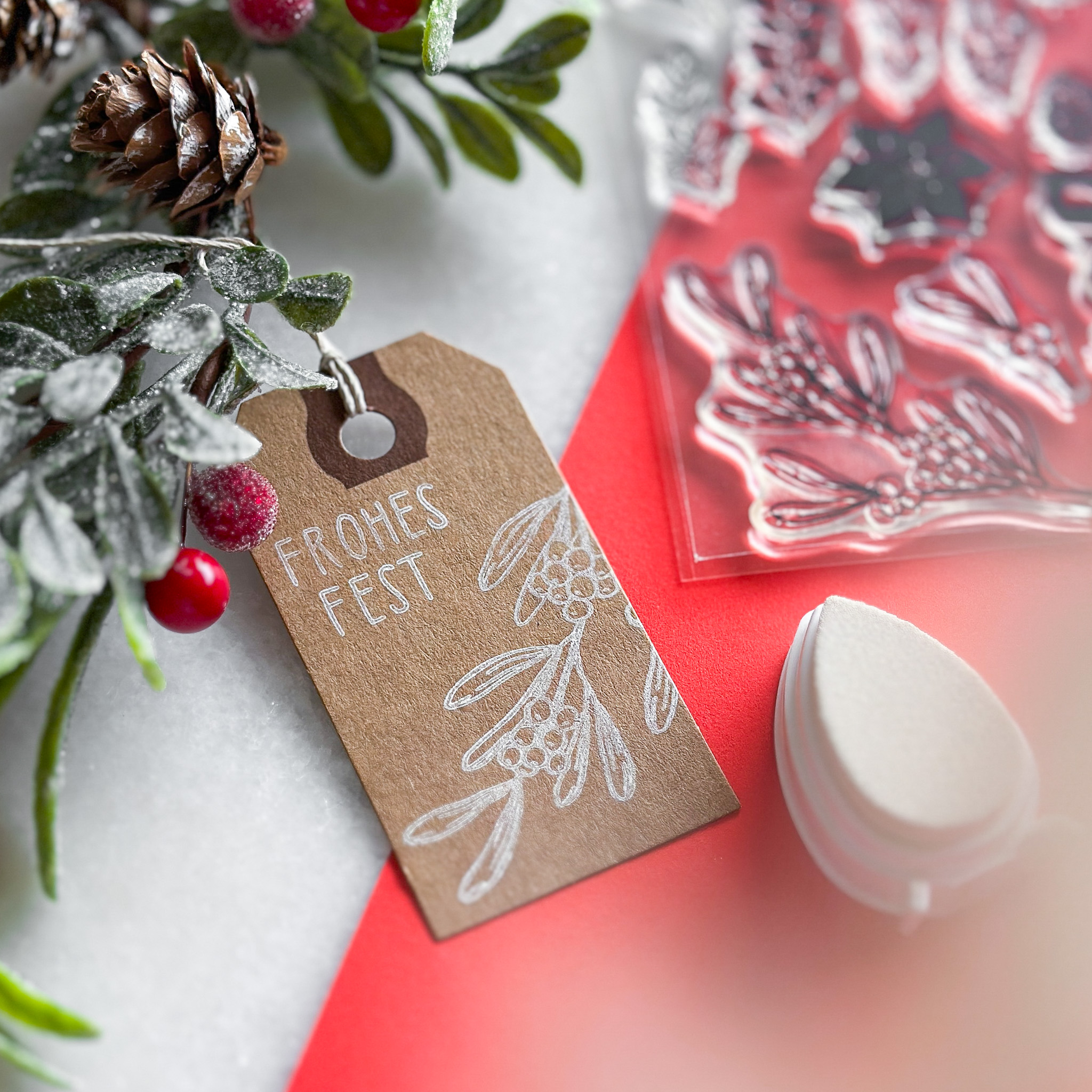 Auf der langen Suche nach einem gut deckenden weißen Stempelkissen für den Gebrauch auf Papier bin ich bei dem Cloud White VersaMagic gelandet. Durch seinen kreideartigen Look wirkt es besonders edel und auch größere Flächen lassen sich damit prima einfärben!