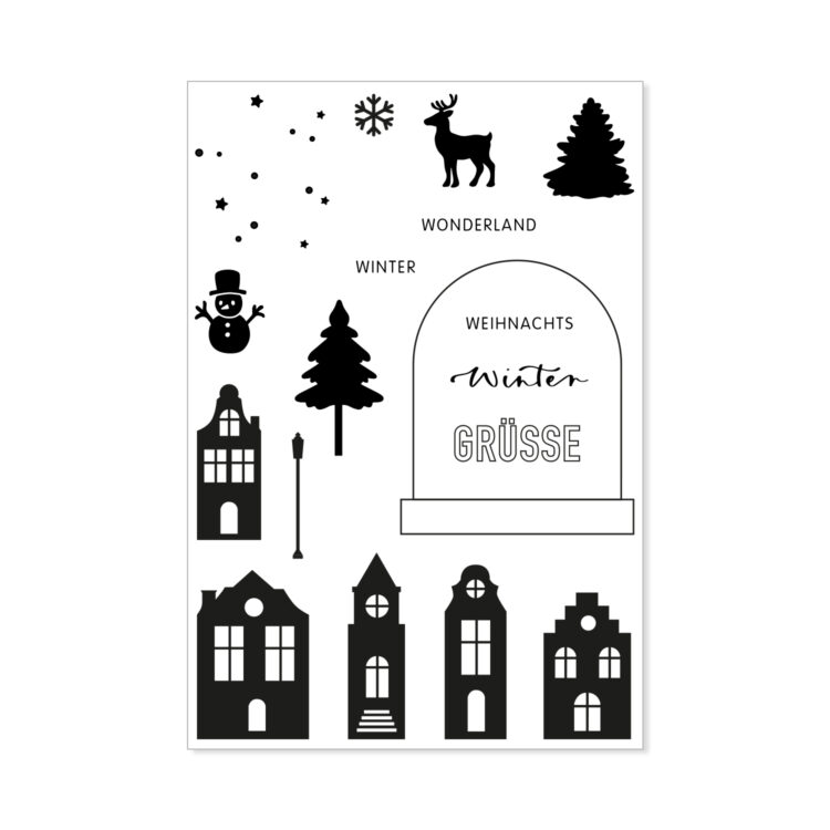 Hier findest du eine Übersicht verschiedener Gestaltungsideen mit dem Stempelset Winter Wonderland. Die dafür verwendeten Produkte findest du im Frau Hölle Onlineshop: